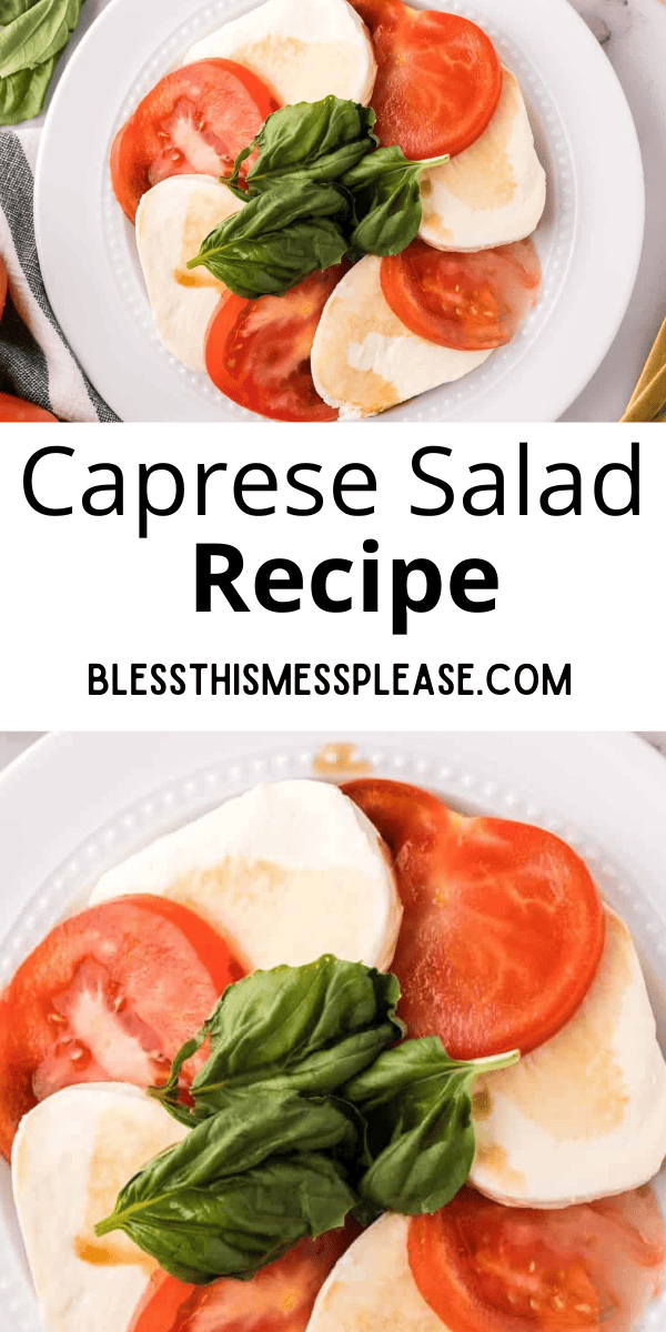 The fresh flavors of ripe tomato and tangy cheese are complimented perfectly by a sharp balsamic vinegar. We love how quick and easy this salad is to assemble. All you have to do is slice your tomatoes and throw the ingredients on a plate and you are good to go!