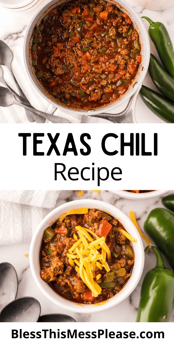 This thick and rich chili is full of hearty flavors, heat, and juicy ground beef! Perfect for a cookout or a chilly weeknight, Texas chili is the ultimate easy-to-make dish.