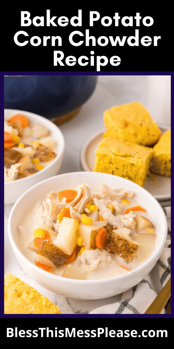 Baked potato corn chowder is creamy, savory, and full of comforting flavors! This warm and satisfying soup is easy to make and perfect for a weeknight meal.